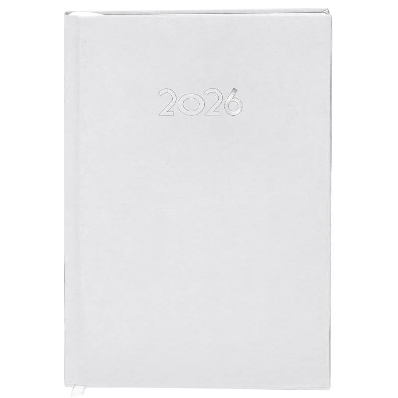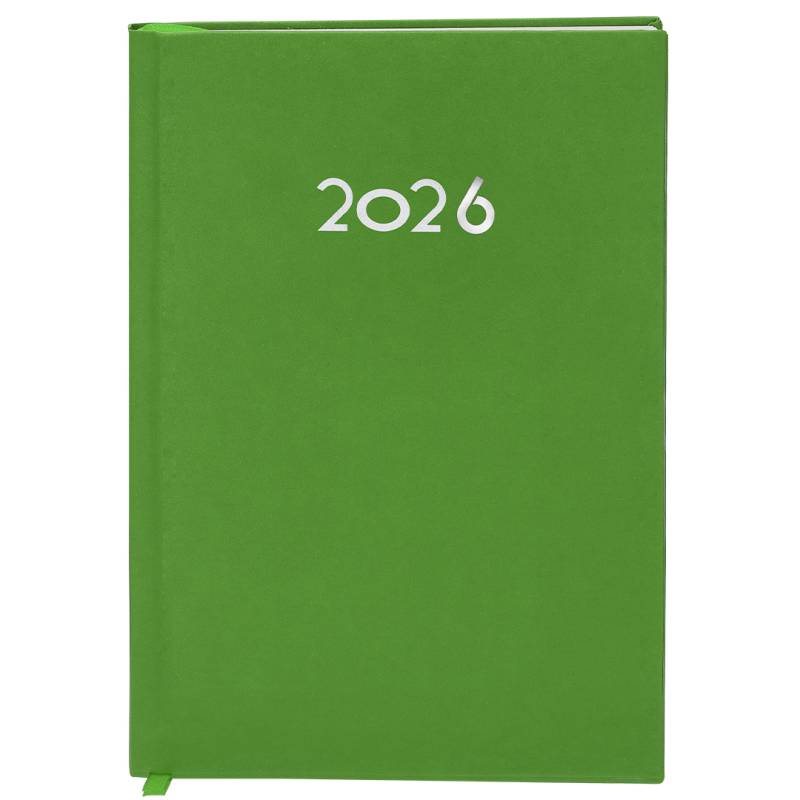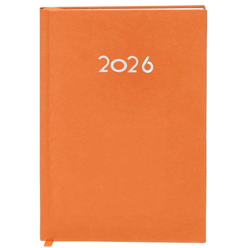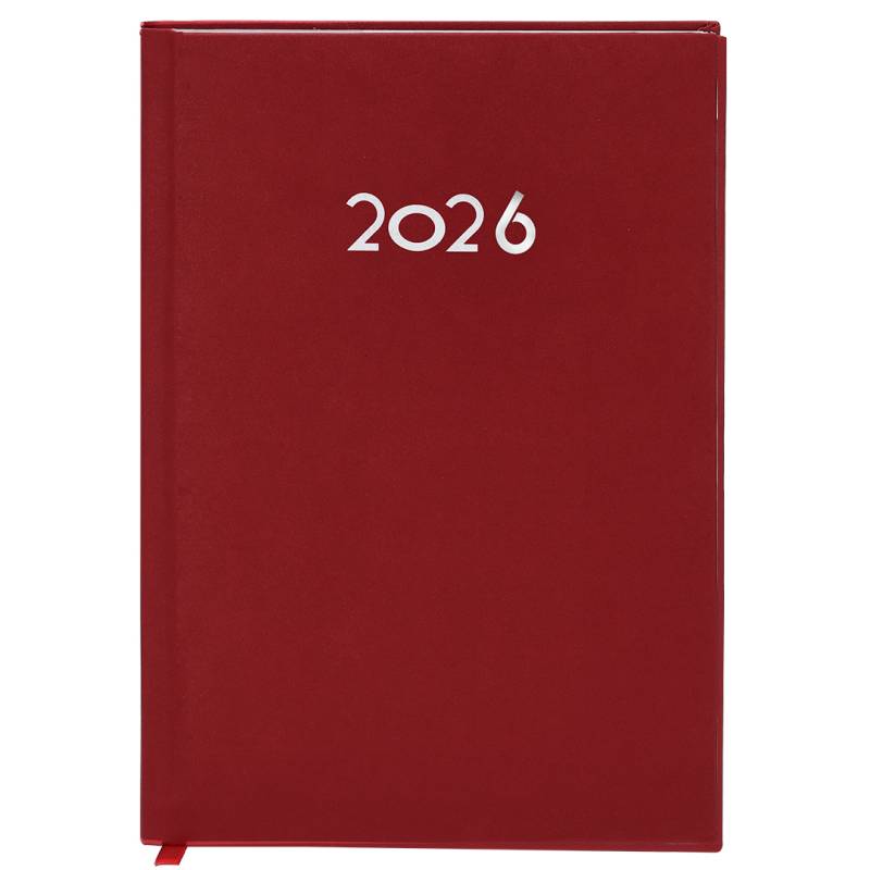 Ver más grande Agenda de tamaño A5 acabada en suave PU. Con cubiertas rígidas y acolchadas. Incluye caja kraft de presentación.Diseño página día y marcapáginas de tela. En 2 idiomas: castellano e inglés.