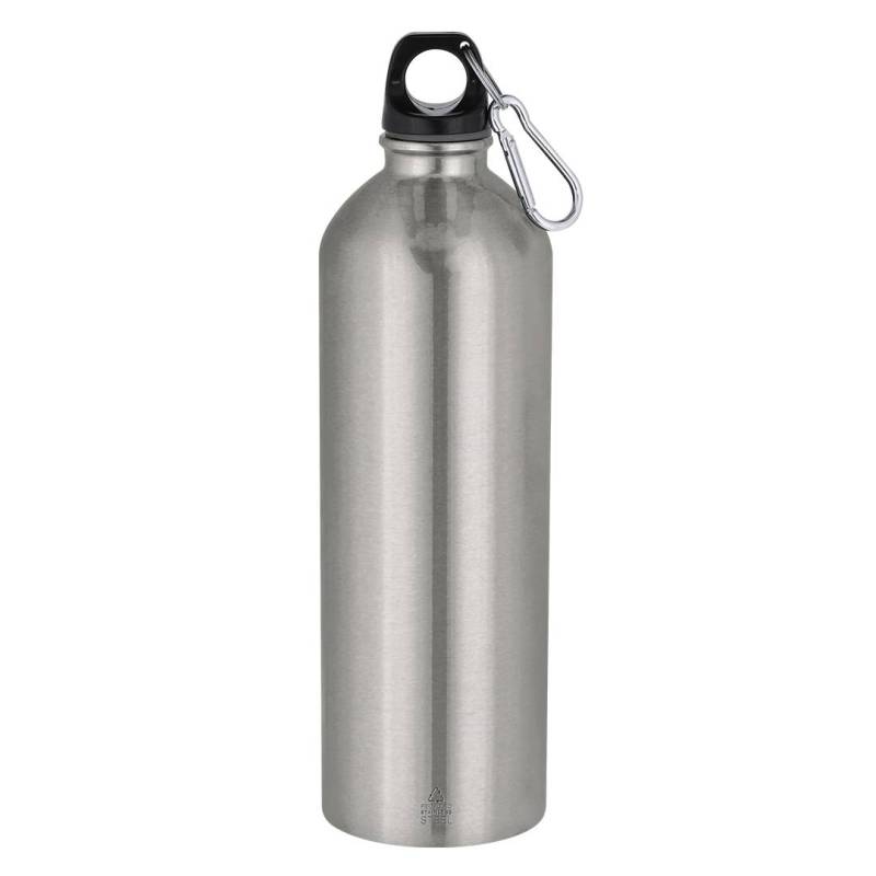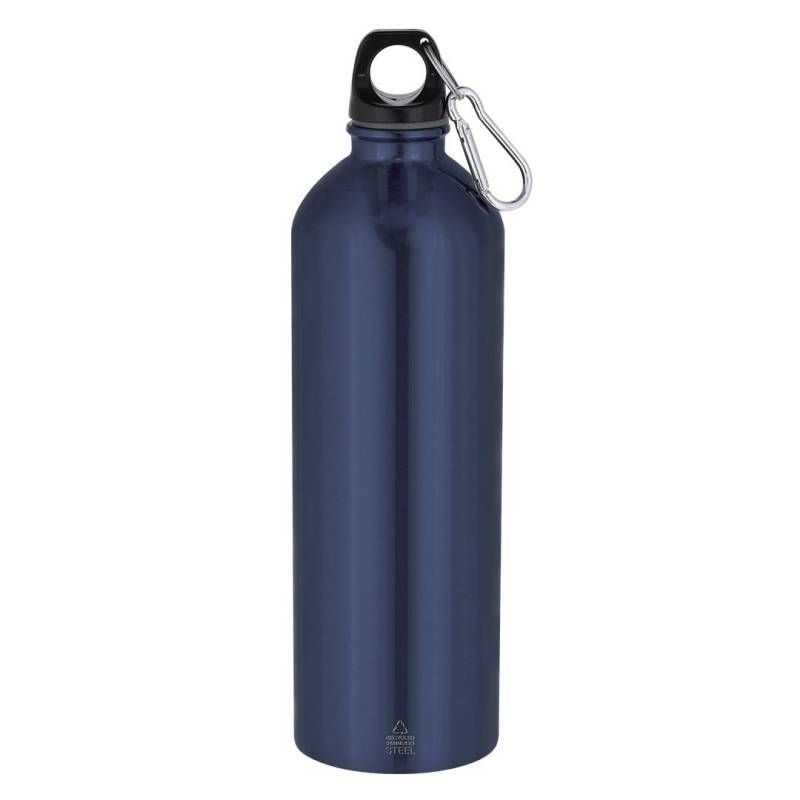 Ver más grande Bidón con 800 ml de capacidad. Fabricado en Acero Inoxidable Reciclado con acabado metalizado. Tapón negro de cierre a rosca para garantizar un sellado óptimo. Incluye mosquetón metálico que facilita su transporte. Con distintivo Acero Inoxidable Reciclado. El acero es uno de los materiales más demandados y que puede encontrarse casi en todas partes, desde productos de uso diario a grandes construcciones. Con innumerables propiedades, entre las que cabe destacar la durabilidad y su alto grado de reutilización, convirtiéndolo en una alternativa muy valorada en soluciones de sostenibilidad. Debidamente tratado, permite obtener nuevos recursos de infinita utilización.