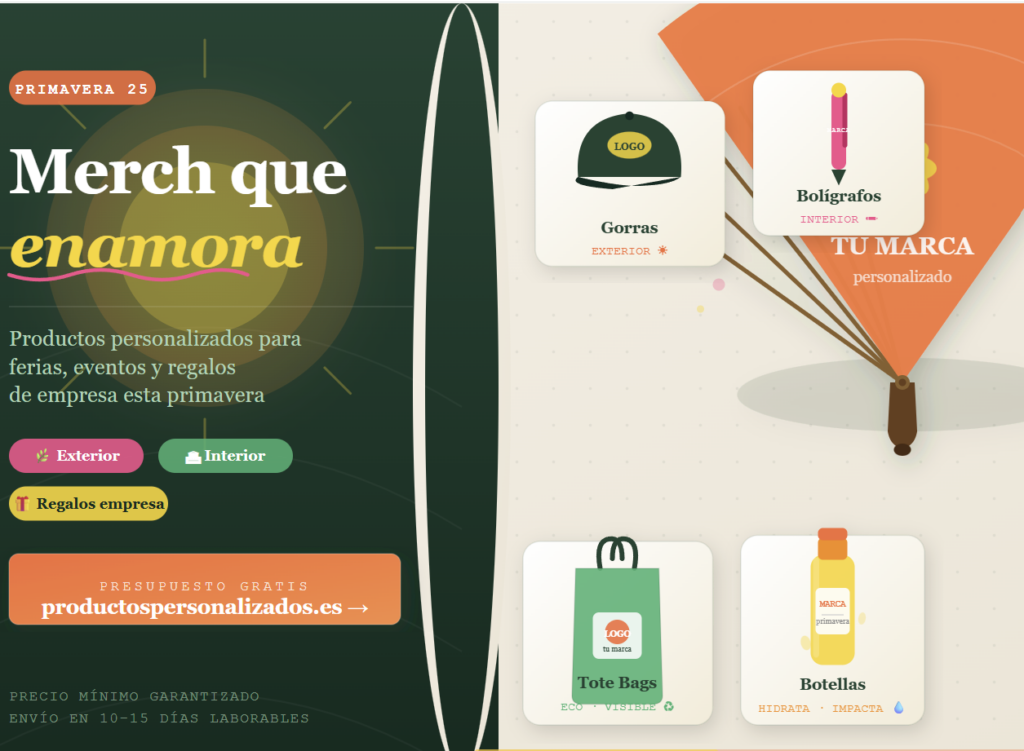 Para estas marcas, la coherencia estética total entre el pack y la identidad visual es innegociable. Productospersonalizados.es ofrece personalización total de todos los elementos: colores corporativos, tipografías, packaging exterior y mensajes. El resultado es un pack que parece diseñado por el equipo creativo de la propia marca.