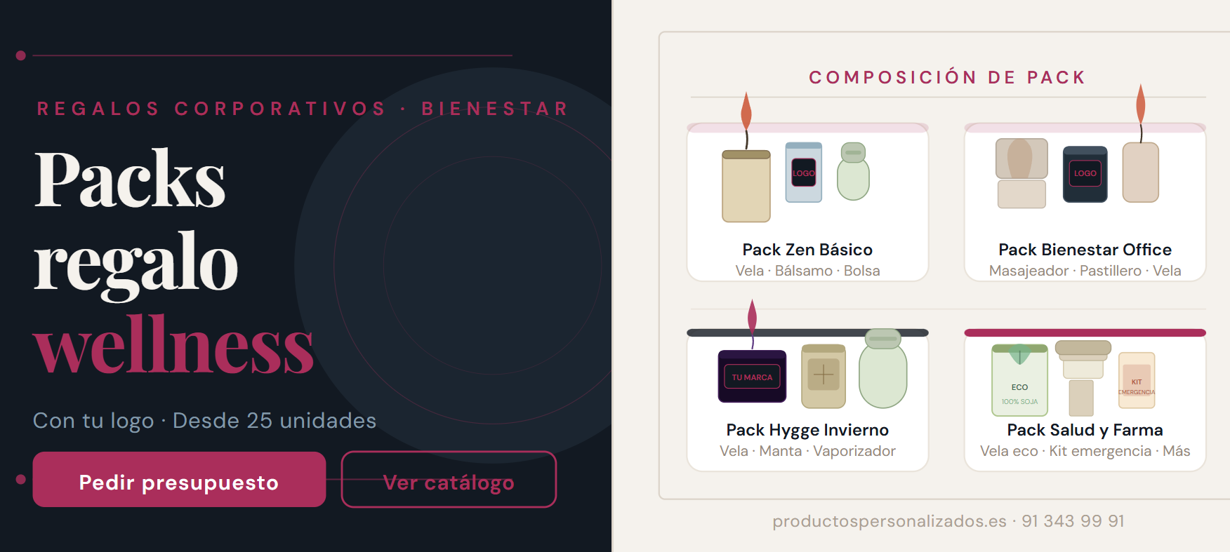 Estos packs son orientativos: en productospersonalizados.es podemos personalizar la composición exacta según tu presupuesto, el número de unidades y el mensaje que quieras transmitir con el regalo.