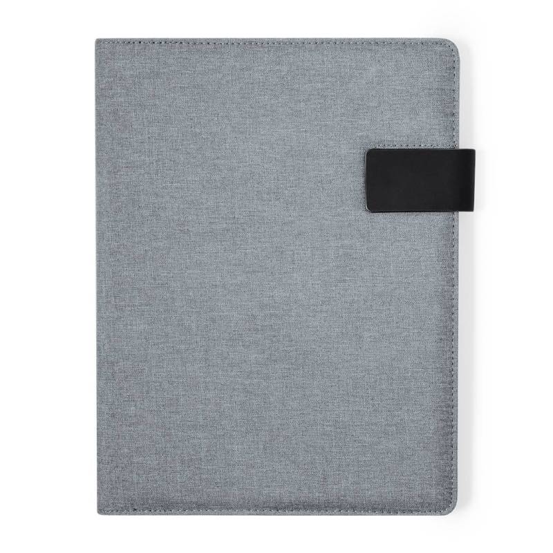 Ver más grande Práctica carpeta fabricada en RPET 600D. Con un interior eficiente que incluye compartimentos para 4 tarjetas, 3 bolsillos elásticos para dispositivos móviles, y un amplio espacio para folios. Este organizador también presenta un práctico soporte para bolígrafos y un bloc de notas con 20 hojas a rayas. Puede mantenerse cerrado de manera segura gracias a su solapa imantada. Disponible en elegantes colores y presentado individualmente en bolsa reciclada. El material RPET se elabora a partir de plástico reciclado, para así fomentar la reutilización de residuos plásticos y ayudar a la sostenibilidad del planeta.