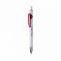 Ver más grande Bolígrafo de mecanismo pulsador con cuerpo de aluminio, acabado sólido en color blanco y clip en variada gama de colores metalizados de acabado brillante. Clip con amplia superficie de impresión. Especialmente diseñado para marcaje en láser y con un recubrimiento exterior especial para que tu publicidad quede perfectamente grabada, a juego con el color del clip. Tinta azul.