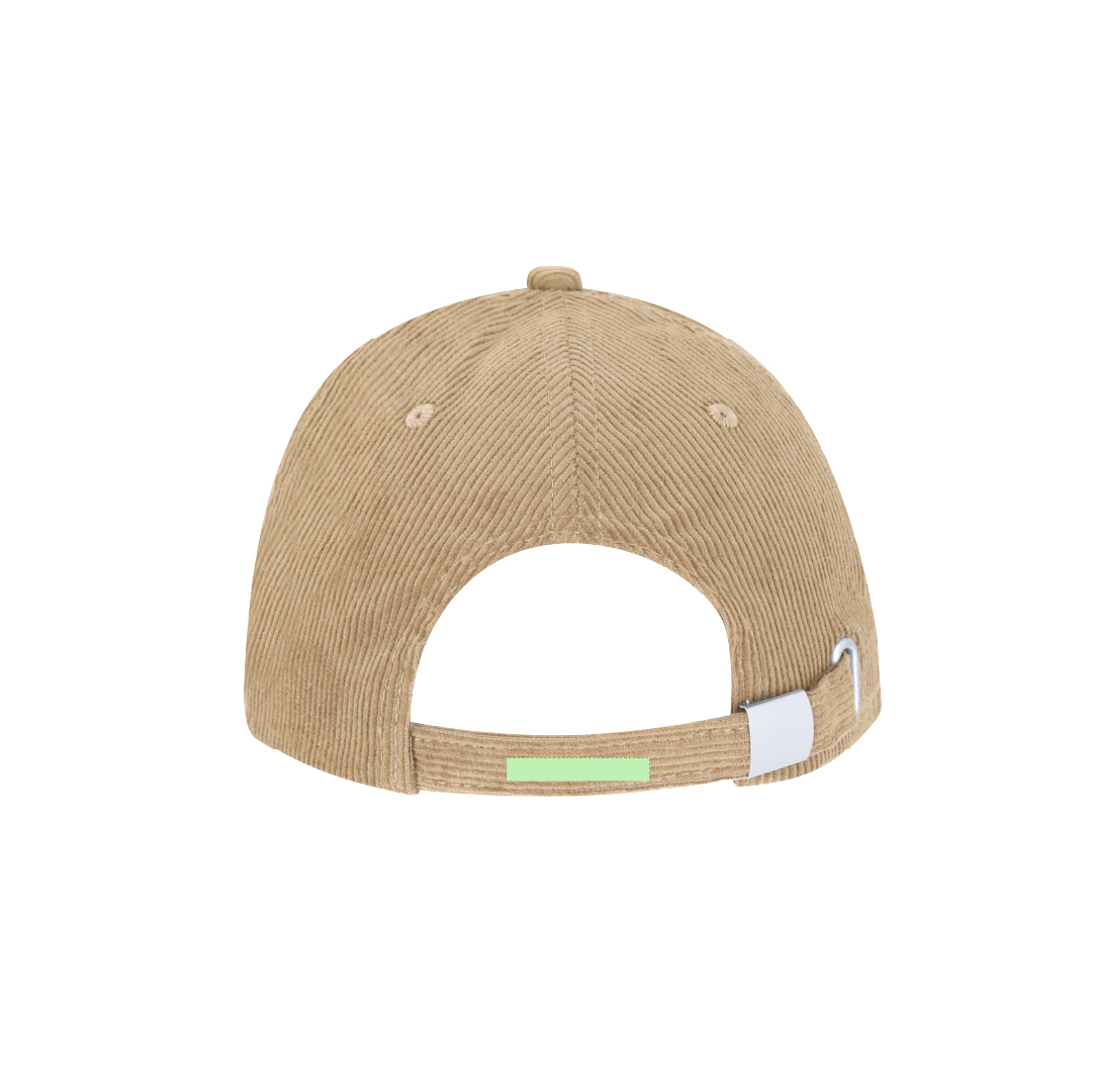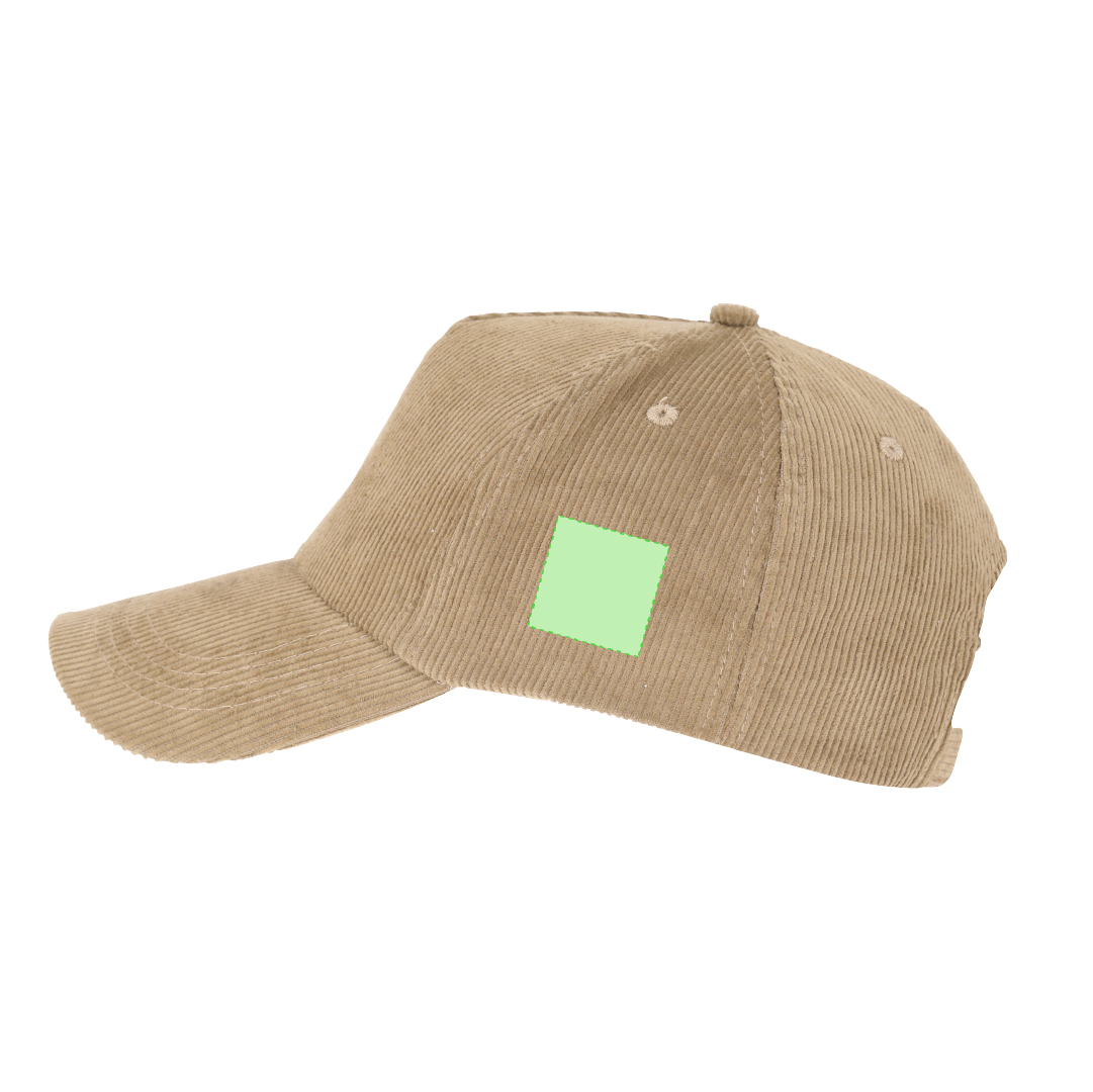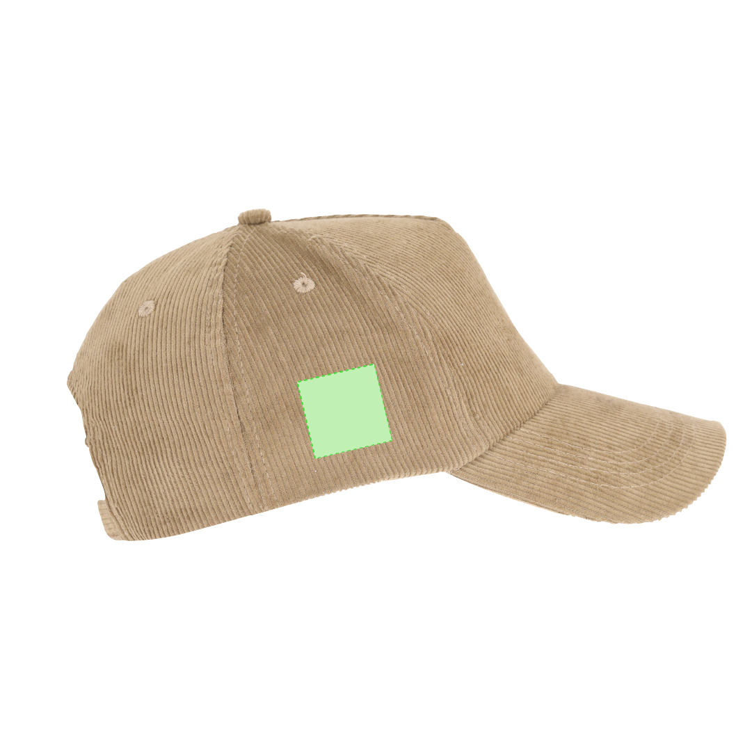 Ver más grande Gorra de 5 paneles fabricada en resistente poliéster efecto pana. Con orificios de ventilación bordados y cierre trasero ajustable de hebilla metálica. Disponible en variada gama de colores.