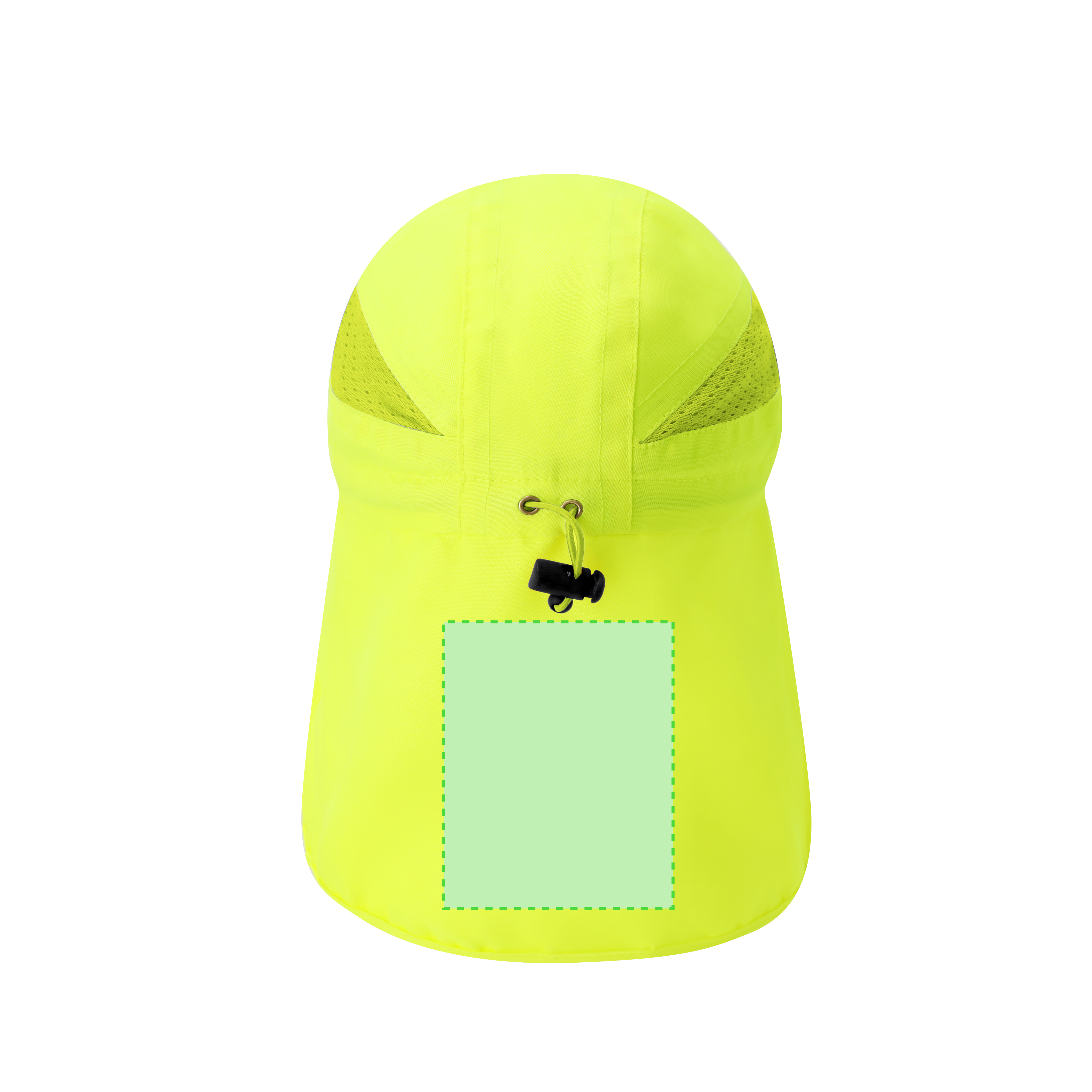 Ver más grande Gorra de poliéster en color fluorescente, ideal para mayor visibilidad. Incluye perfil reflectante en la visera. Con cierre elástico con accesorio ajustable para un cómodo y personalizado ajuste. Cuenta con paneles de redecilla transpirables que favorecen la ventilación durante el uso. Su práctica solapa trasera ofrece protección adicional, resguardando el cuello de los rayos solares.