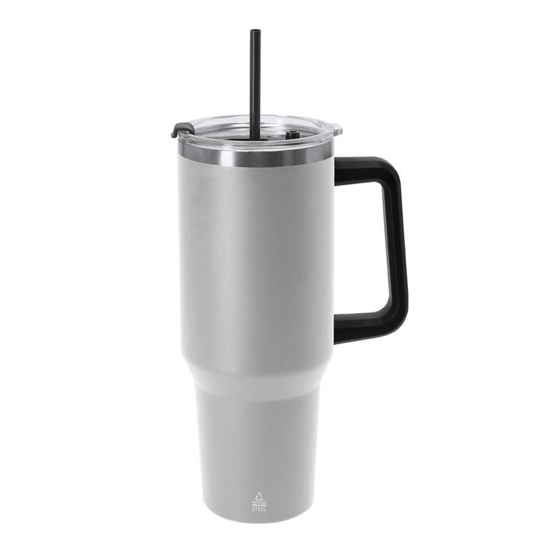 Ver más grande Jarra térmica de 1,2 L de capacidad. Fabricada en Acero Inoxidable Reciclado. Cuenta con doble sistema de bebida: orificio con cierre hermético y pajita integrada, adaptándose a las preferencias de uso. Incluye asa de transporte ergonómica de PP para mayor comodidad. Libre de BPA. Incluye distintivo acero inoxidable reciclado. El acero es uno de los materiales más demandados y que puede encontrarse casi en todas partes, desde productos de uso diario a grandes construcciones. Con innumerables propiedades, entre las que cabe destacar la durabilidad y su alto grado de reutilización, convirtiéndolo en una alternativa muy valorada en soluciones de sostenibilidad. Debidamente tratado, permite obtener nuevos recursos de infinita utilización.