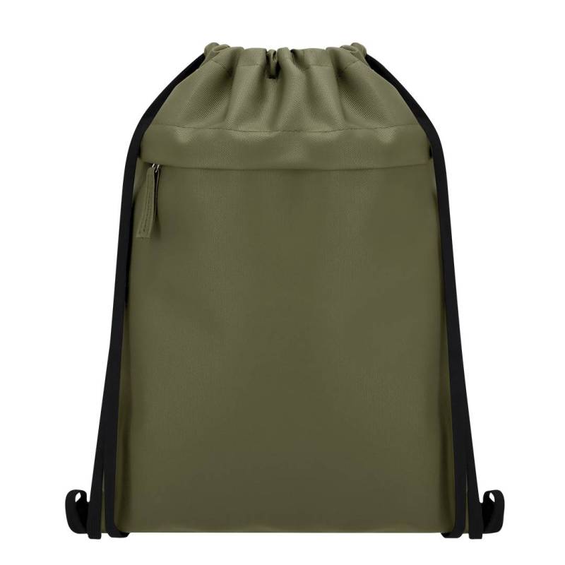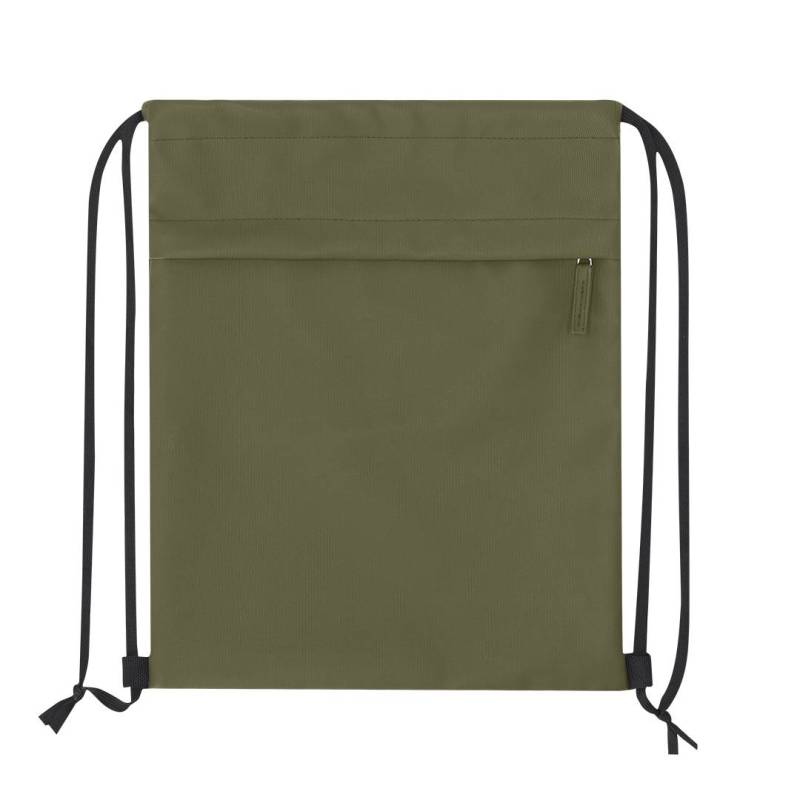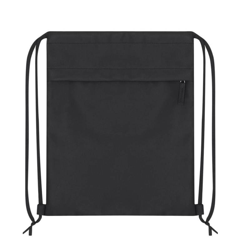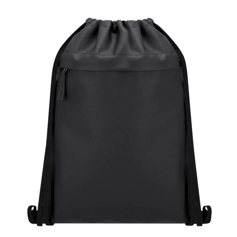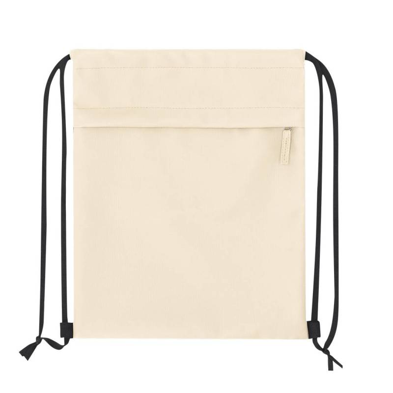 Ver más grande Mochila de cuerdas fabricada en suave PU combinado con resistente poliéster 600D. Incluye funcional bolsillo frontal con cierre de cremallera y tirador a juego en PU.