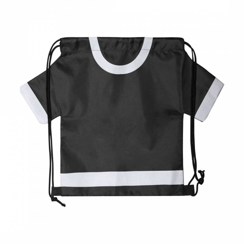 Ver más grande Original y divertida mochila para niño de cuerdas en forma de camiseta. En suave poliéster 210D, con cuerdas autocierre en color negro y esquinas reforzadas. disponible en variada gama de colores intensos.