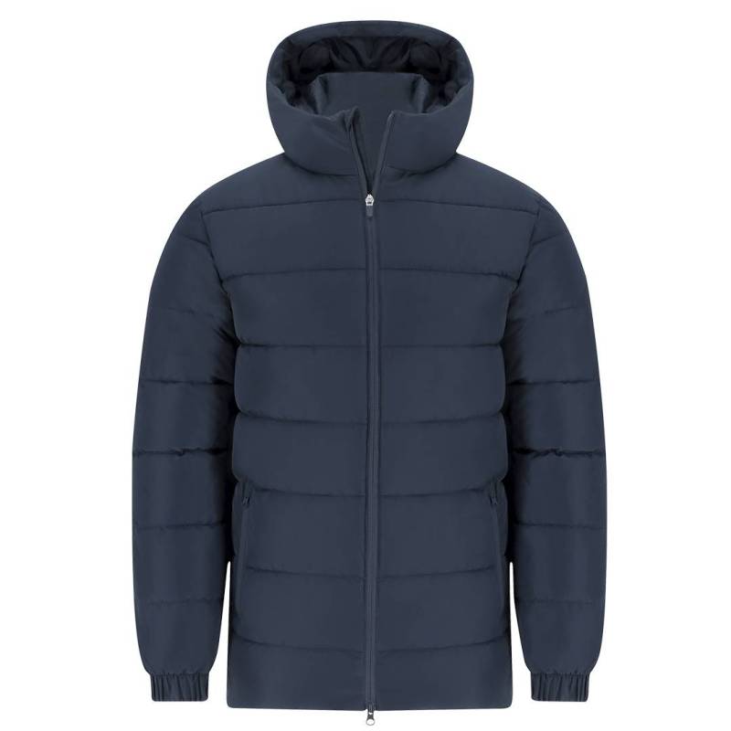 Ver más grande Parka unisex acolchada con capucha fija y visera integrada. Incorpora cremallera frontal a tono con doble tirador y protector de barbilla. Puños elásticos para un ajuste cómodo y dos bolsillos laterales con cierre de cremallera a juego. Incluye acceso interior para marcaje en pecho izquierdo y espalda, ideal para personalización.