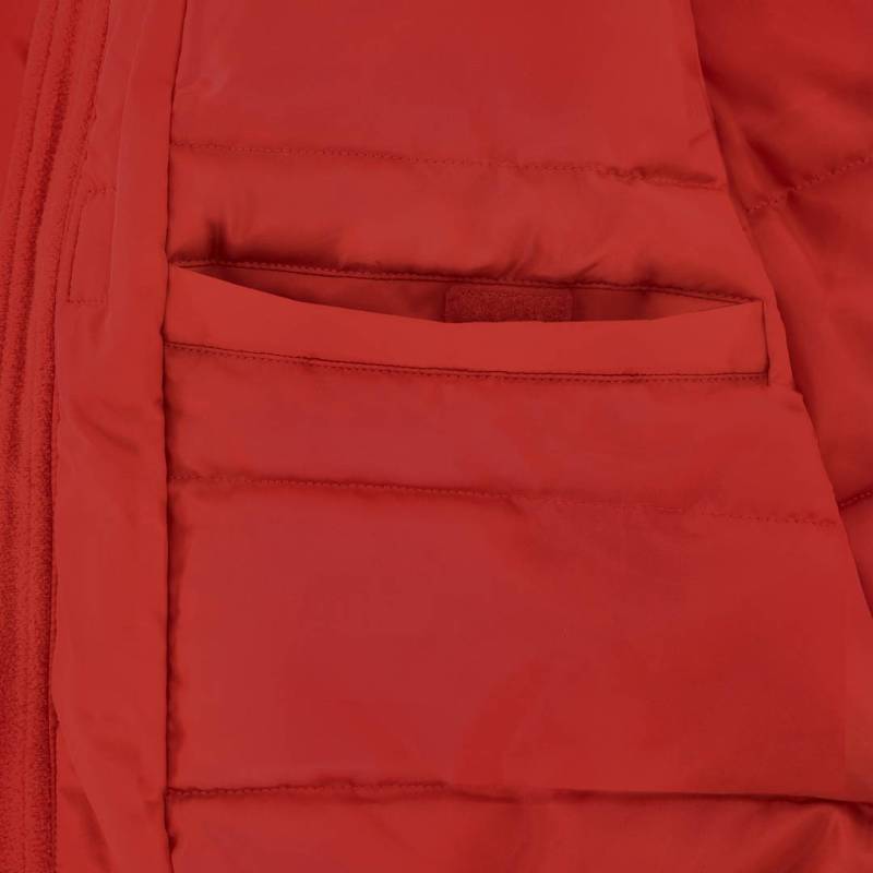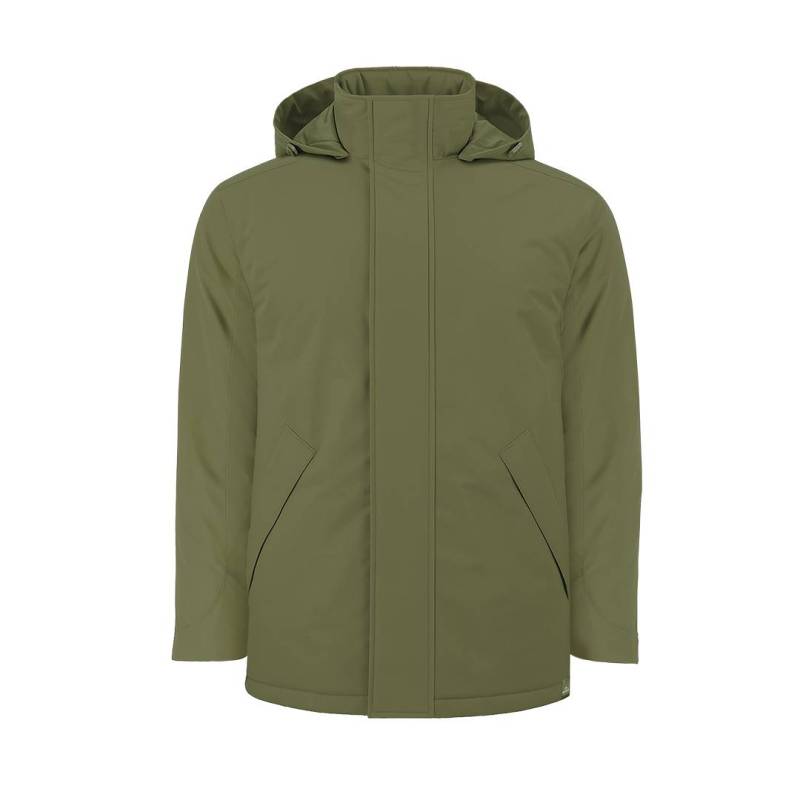 Ver más grande Parka unisex acolchada confeccionada en tejido impermeable 100% RPET (poliéster reciclado). Cuello alto con capucha ajustable y plegable, integrada mediante sistema de cierre con velcro. Con cremallera central a tono con solapa protectora. Incopora bolsillos laterales con cremallera y tapeta fija a juego. Incluye un bolsillo interior con cierre de velcro. Puños ajustables con velcro para mayor ajuste. Forro polar en cuello e interior de los bolsillos para mayor confort. Incluye acceso interior para marcaje en pecho izquierdo y espalda, ideal para personalización. Con etiqueta distintivo RPET a tono.