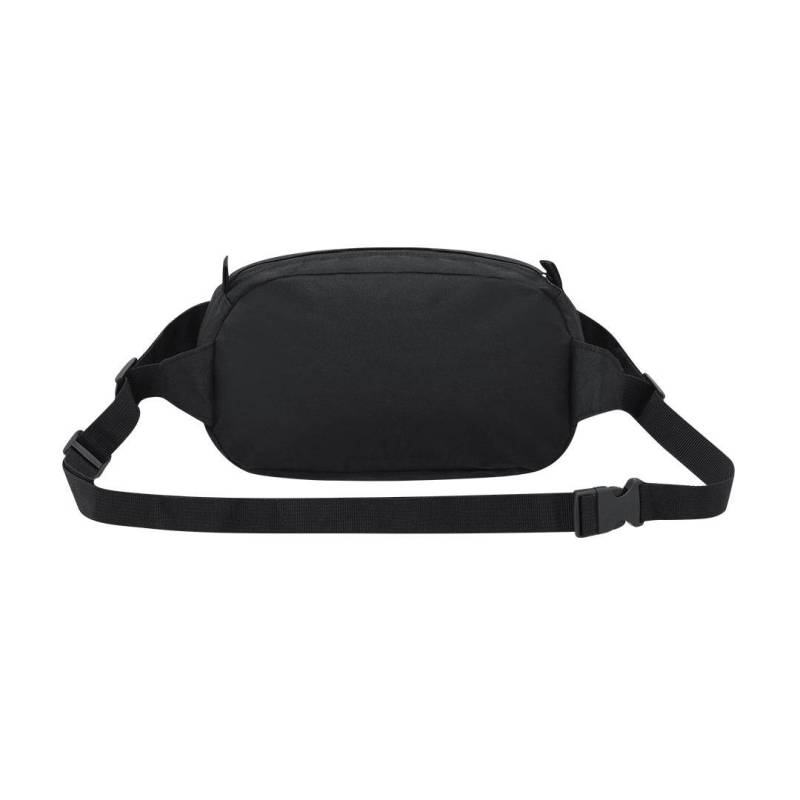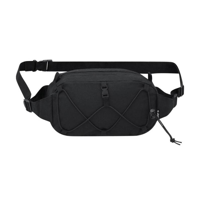 Ver más grande Riñonera fabricada en poliéster RPET 600D. Cuenta con un bolsillo principal con cierre de cremallera invisible en color negro, con tirador metálico en negro, y cinta ajustable con cierre de hebilla en la correa. En la parte frontal incluye un cordón elástico ajustable. Incluye etiqueta distintiva de RPET.