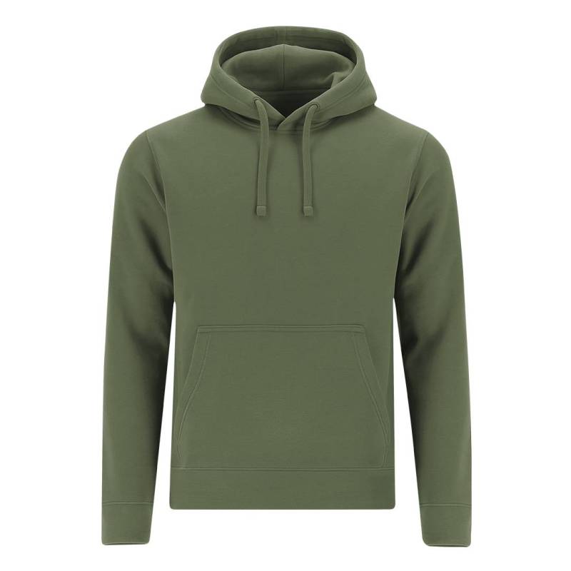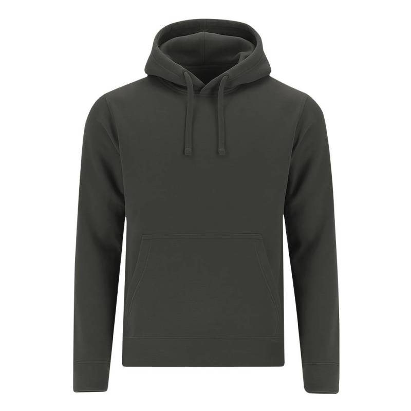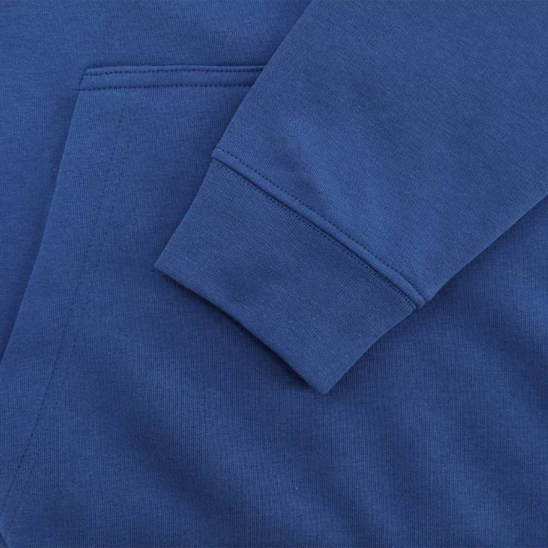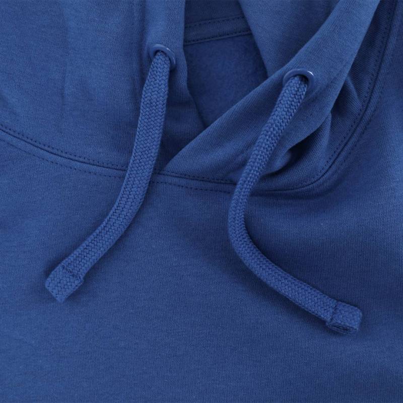Ver más grande Sudadera con capucha forrada a tono de doble tejido. Confeccionada en algodón y poliester en suave felpa perchada de 280 g/m2. Con Bolsillo tipo canguro. Cordón ajustable y ojales metálicos a tono. Cubrecosturas en el cuello. Puños y la cintura en punto canalé 1x1 con elastano para mayor ajuste y confort.