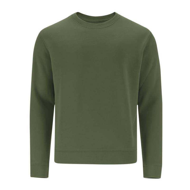 Ver más grande Sudadera unisex en algodón y poliester en suave felpa perchada 280 g/m2. Con cuello redondo, puños y cinturilla en punto canalé 1x1 con elastano, que aporta mayor ajuste y confort. Cubrecosturas reforzado en el interior del cuello.