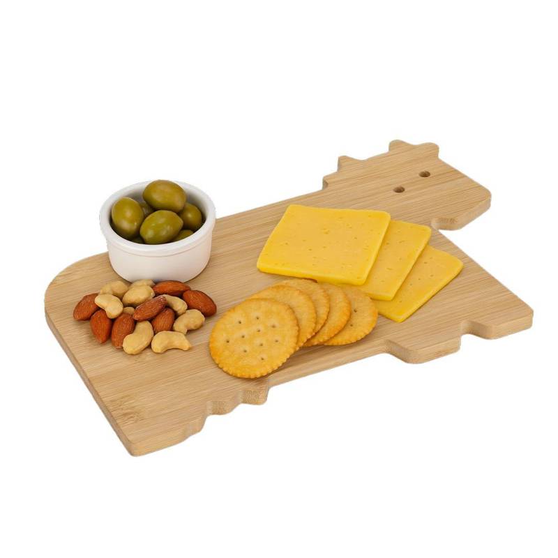 Ver más grande Tabla de cocina con original diseño en forma de vaca, fabricada en suave bambú, muy fácil de limpiar y guardar.