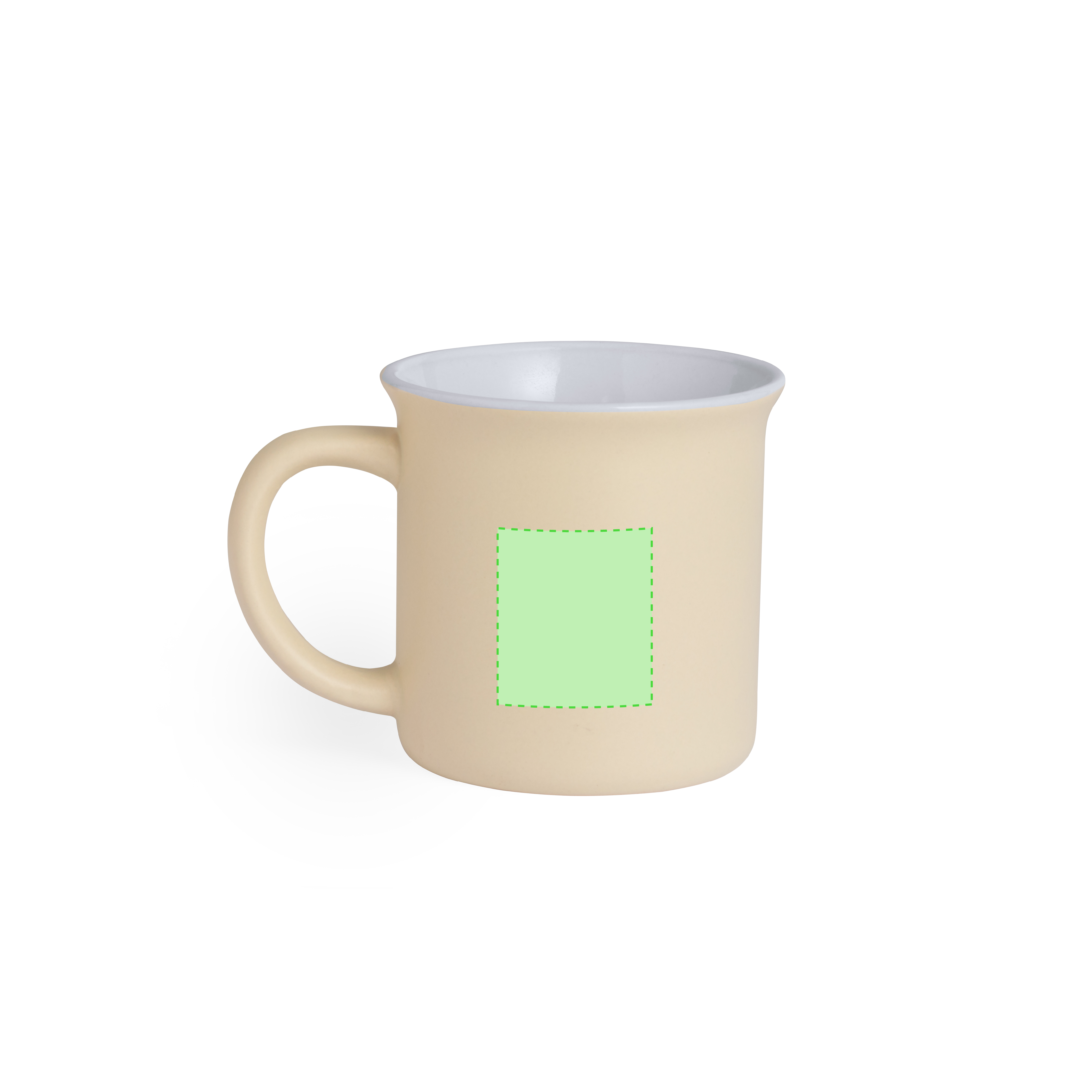 Ver más grande Taza de cerámica con 300 ml de capacidad. Distinguido diseño vintage en combinación de interior en color blanco y exterior en variada gama de colores mate. Presentada en caja individual acabado kraft.