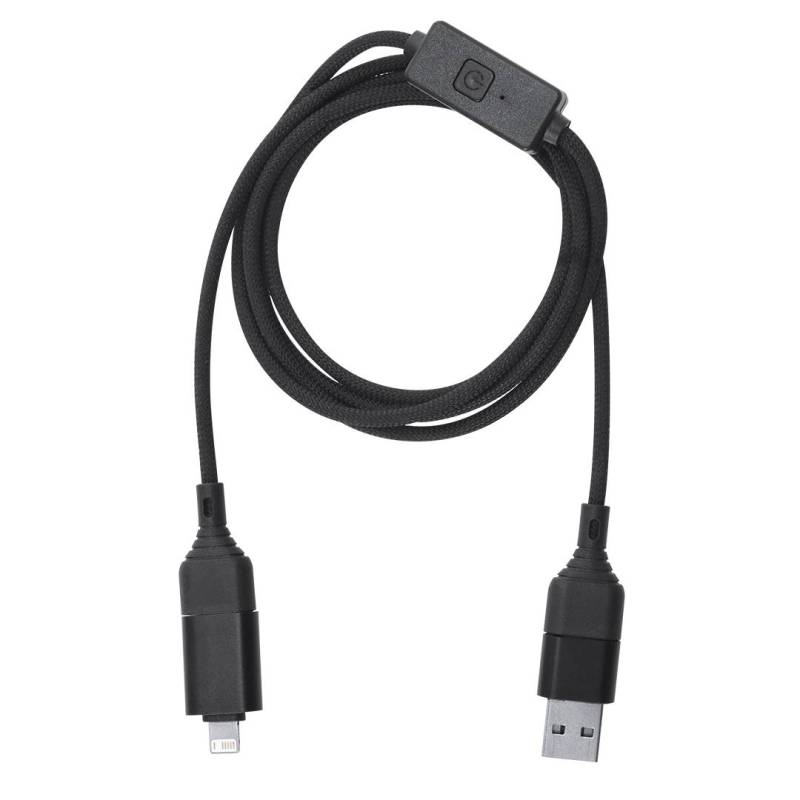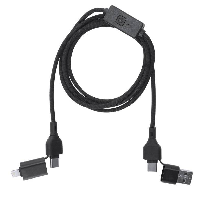 Aluminio Reciclado/ Poliéster RPET. Apto para transferir datos. Conexión Tipo C y Lightning PD 60W.Su mensaje ha sido enviado a nuestro equipo.