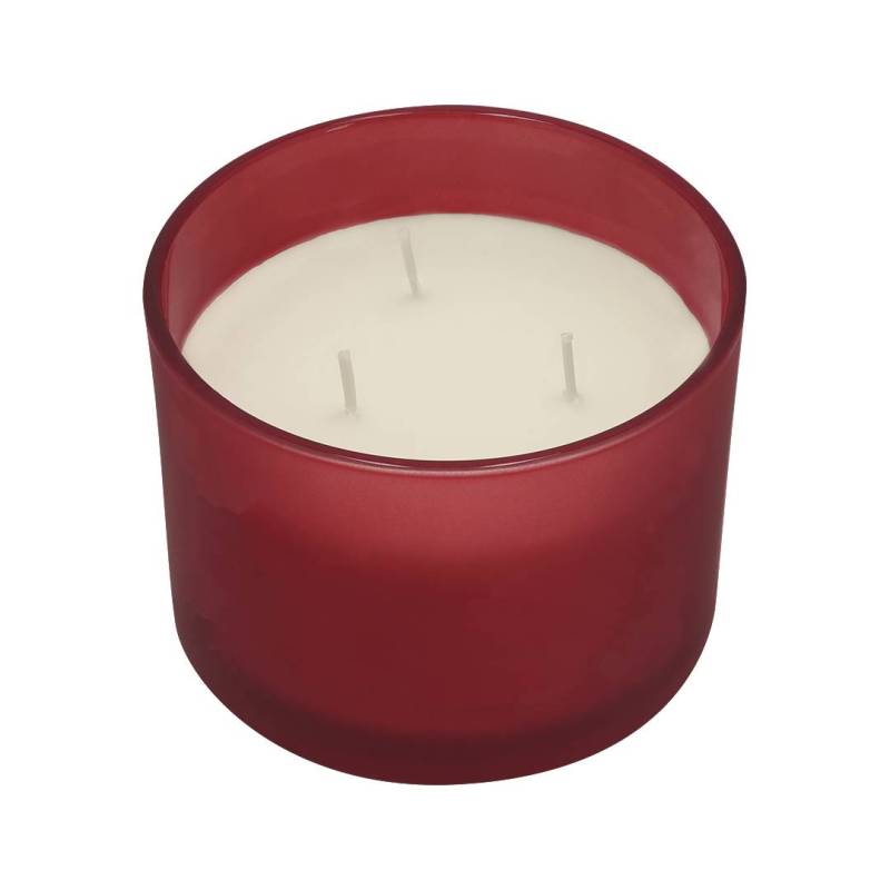Ver más grande Vela aromática en tarrito de cristal con tres mechas. Disponible en cristal de variados colores y con distintos aromas según el color:Blanco aroma vainilla.Negro aroma sándalo.Rojo aroma canela.Azul marino aroma jazmín.